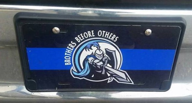 One Brothers Before Others Blue Line License Plate.