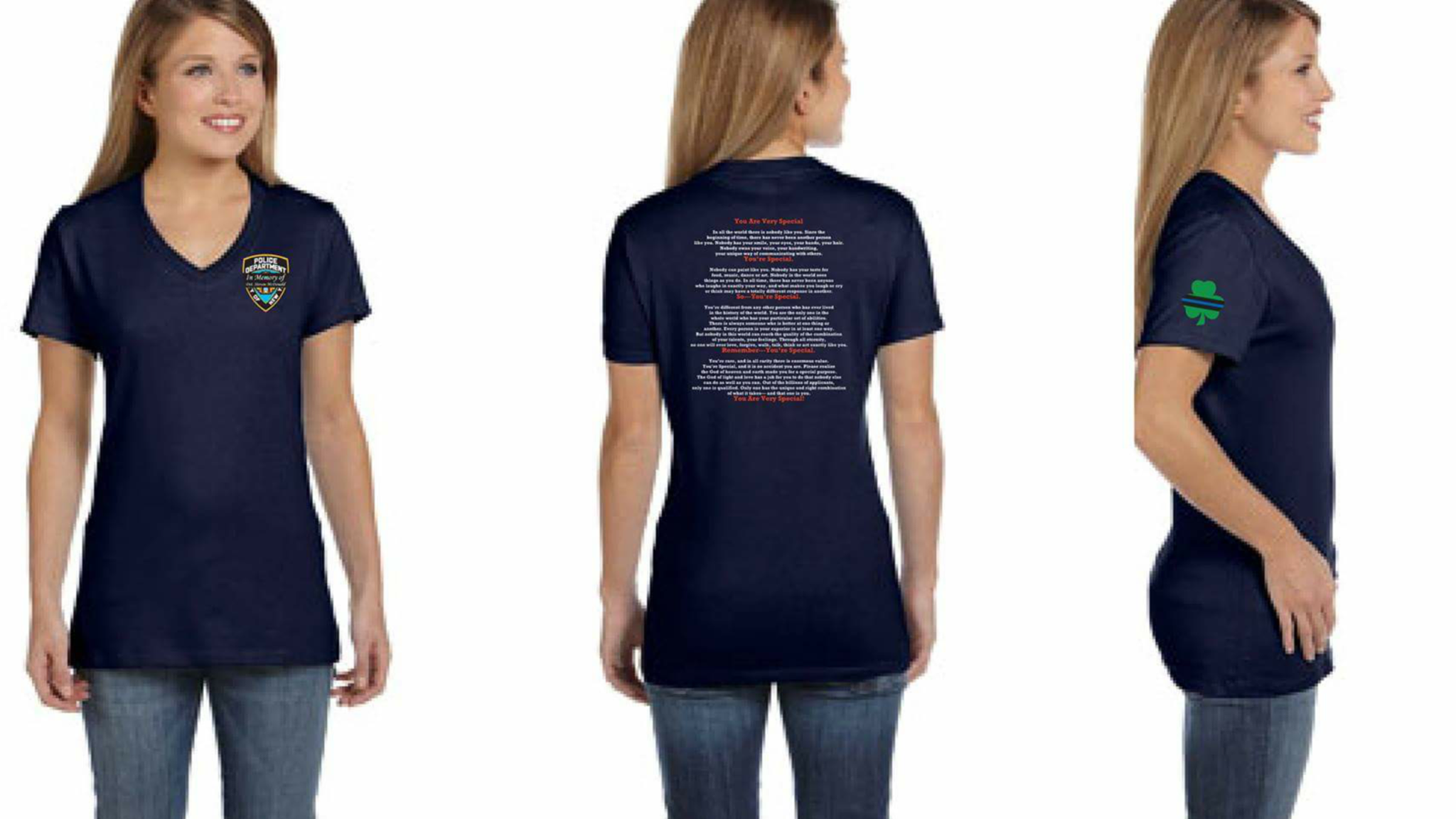 • On the back of the navy shirt is a poem called “You are very special,” which Det. McDonald would normally give out when he did speaking events.