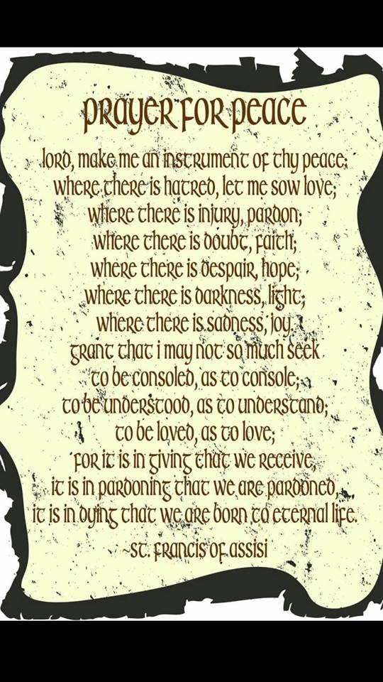 • On the back of the grey shirt is the St Peters prayer for peace.